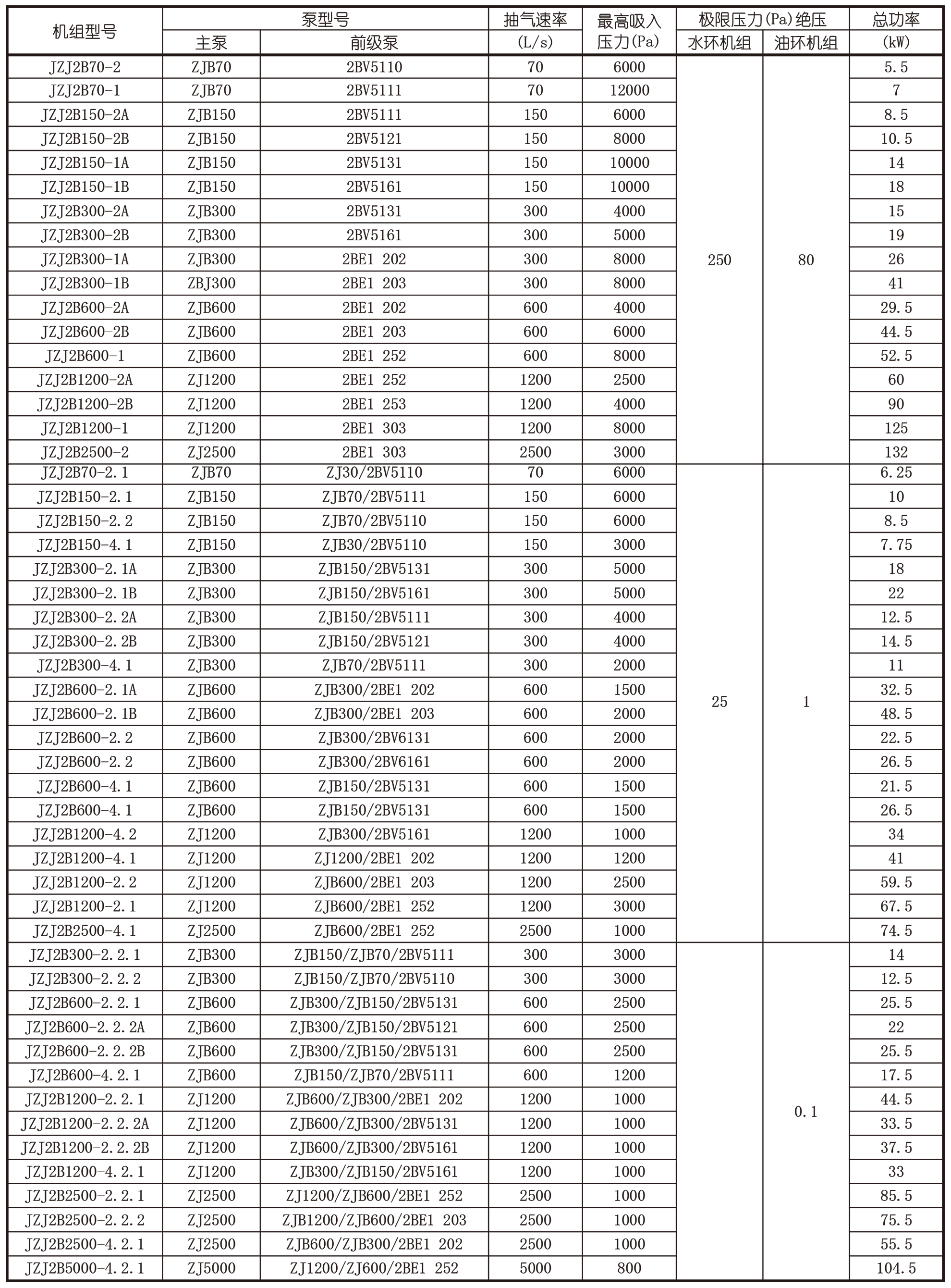JZJ2B系列羅茨水環(huán)真空機(jī)組是以羅茨泵為主泵,以水環(huán)泵為前級泵串聯(lián)而成的。羅茨水環(huán)真空機(jī)組選用水環(huán)泵作為前級泵比其它真空泵更為有利,它克服了單臺水環(huán)泵使用時極限壓力差(機(jī)組的極限壓力比水環(huán)泵有很大的提高),在一定壓力下抽氣速率低的缺點,同時保留了羅茨泵能迅速工作,有較大抽氣速率的優(yōu)點。尤其能夠適應(yīng)抽除大量的可凝性蒸汽,特別是當(dāng)氣鎮(zhèn)油封機(jī)械真空泵排除可凝性蒸汽能力不夠,或使用的溶劑能使泵油惡化而影響性能,或者是真空系統(tǒng)不允許油污染的時候更為明顯。